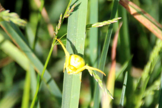 Diese Krabbenspinne haben wir an unserem Bienenstand in Landstetten entdeckt. Sie ist als Teil einer Blüte getarnt, sitzt auch oft auf der Unterseite von Blütenblättern und wartet dort darauf, daß sich ein fliegendes Insekt zum Nektartanken niederlässt. Diese hier hatte es sich besonders einfach gemacht und saß direkt vor dem Flugloch eines Bienenkastens. Neben der Krabbenspinne gibt es noch zahlreiche andere Tiere, die von den Bienen selbst profitieren. Bei uns beobachte ich vor allem Tigerspinnen, zahlreiche Vogelarten, v.a. Meisen, Bunt- und Grünspechte, Spitzmäuse, und Ameisen. Neben seiner Bestäubungsleistung und dem produziertem Honig bildet ein Bienenvolk im Jahr mehrere kg Biomasse, die der Natur letztendlich auf die eine oder andere Weise wieder zugute kommen. Neben der Biomasse ist die abgestrahlte Wärme für einige Tierarten interessant. So finde ich in Deckel und Boden der Kästen immer wieder diverse Spinnen und Käfer, Nachtfalter, Eidechsen und Blindschleichen. Ameisen tragen ihre Eier gerne auf die Deckelfolie und legen sie dort über das warme Brutnest der Bienen um sie ausbrüten zu lassen. Meist hat sich jede Art für sich einen eigenen Kasten ausgesucht. Ordnung muß sein.